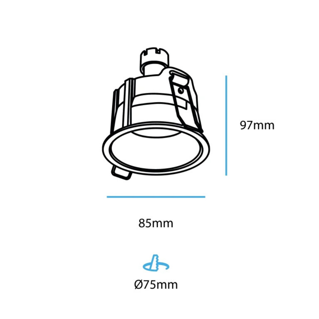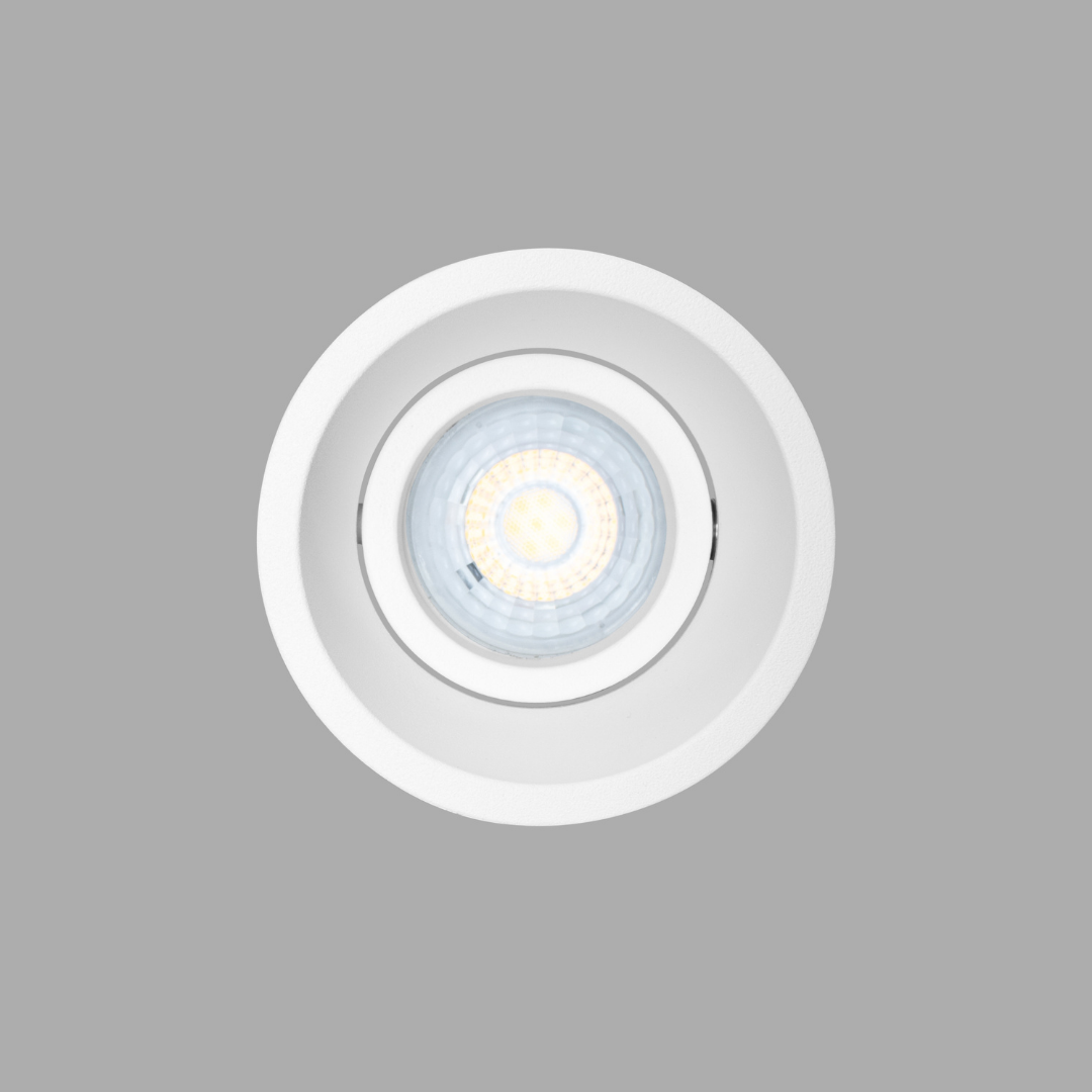 Mini GU10 LED luminaire for recessed installation in drywall or any type of false ceiling for new or existing construction. Its recessed design provides excellent visual comfort, ideal for traffic areas, and excellent color rendering. The luminaire body is made of die-cast aluminum and finished with powder-coated paint. Lifespan: 25,000 hours. Bulb required.