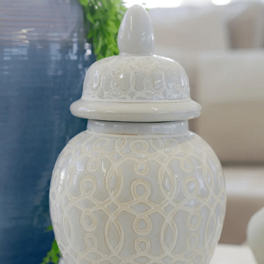Accesorio decorativo en cerámica labrado.