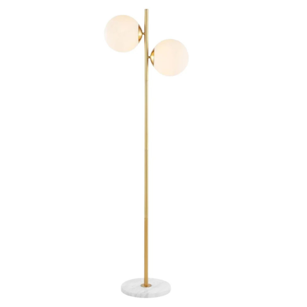 Globos de vidrio esmerilado, metal dorado y base en mármol
