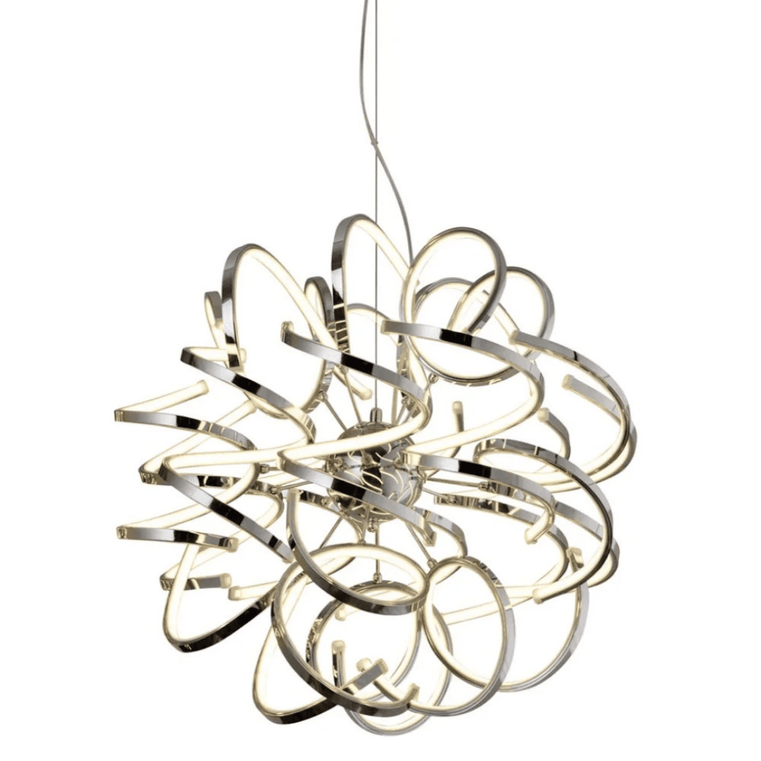 Lámpara colgante con bordes metálicos cromados con cinta LED luz día y acrílico. Potencia 42*5.76 W