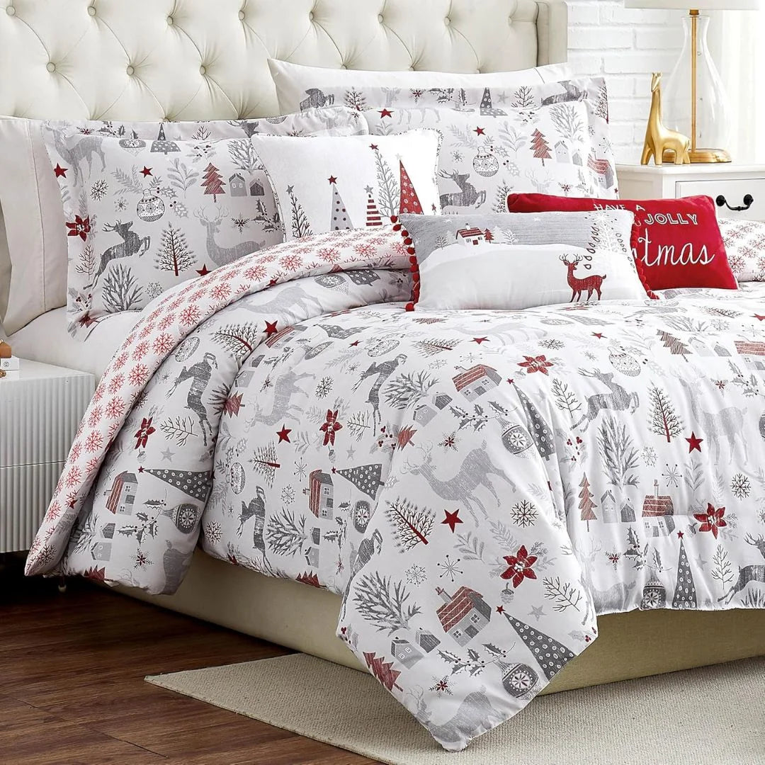 Incluye: 1 edredón, 2 fundas decorativas, 1 set de sabanas y 2 fundas de almohadas.