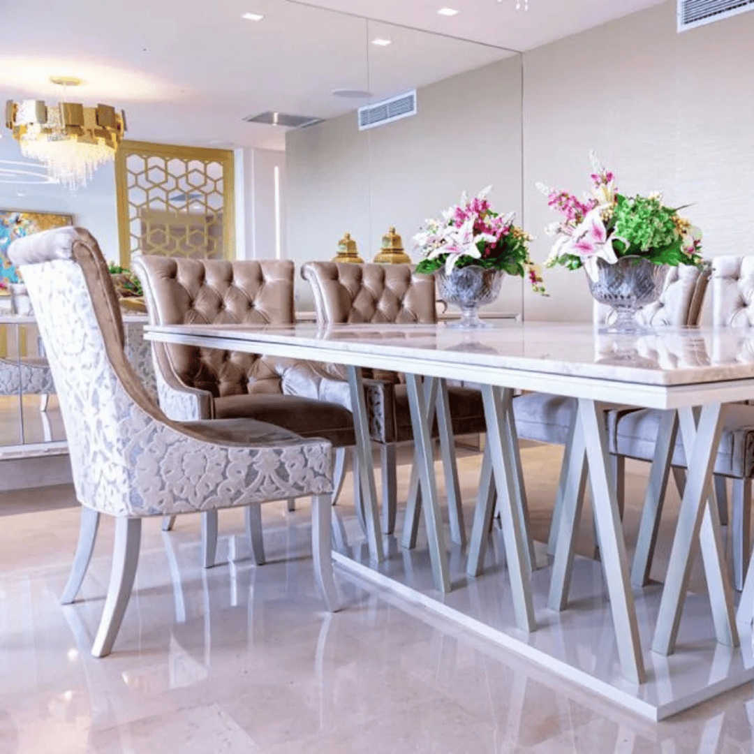 Nuestra mesa de comedor Vera se caracteriza por su base escultórica.
