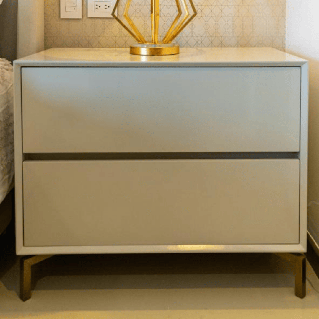 Cuenta con dos gavetas, herrajes europeos y acabado en poliuretano.