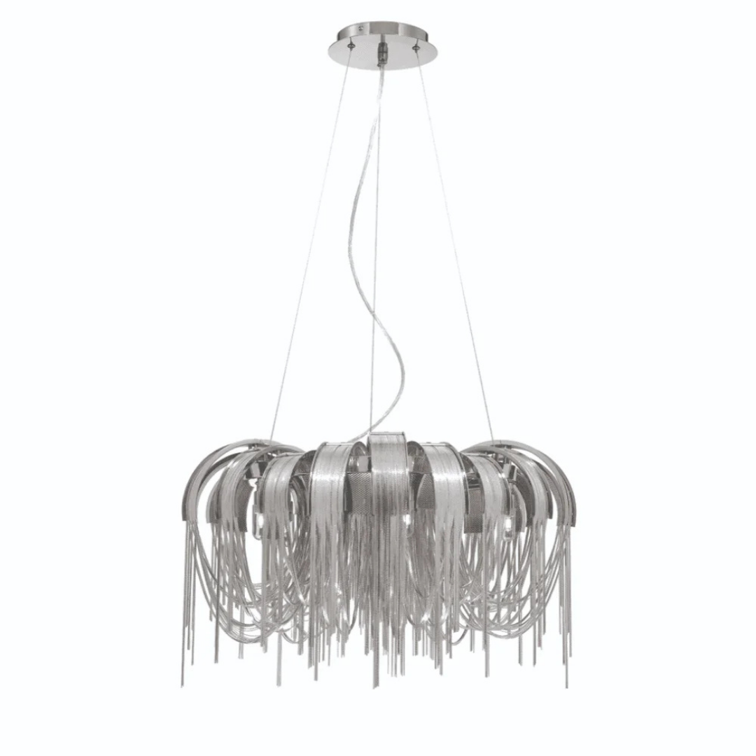 Lámpara colgante con decoración de cadenas, material en metal, luz LED.