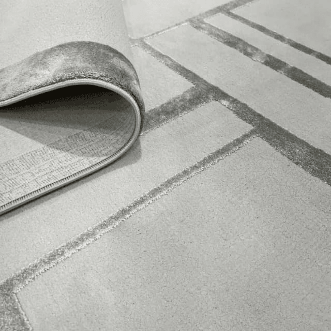 Alfombra en seda viscosa y acrílico.